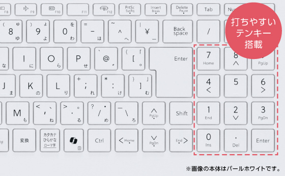 入力装置 [キーボード]キーピッチ19.0mm、キーストローク1.7mm、103キー (Copilotキー・テンキー付き)、JIS標準配列