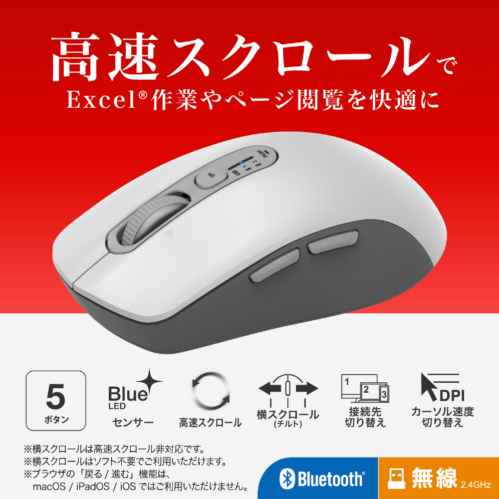 「Bluetooth・無線(2.4GHz)両対応 高速スクロールホイール搭載マウス」