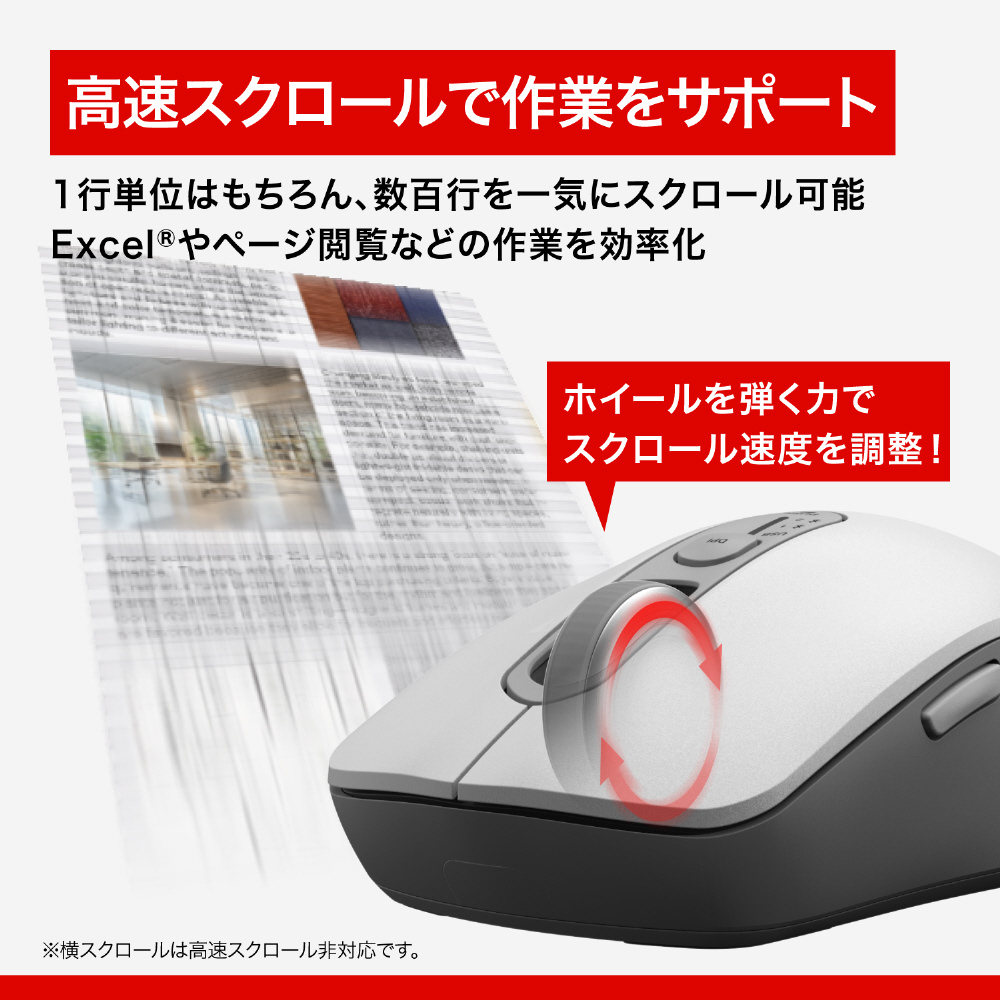 高速シームレススクロールでExcelR作業やページ閲覧を快適に。タイパを向上させるワイヤレスマウス。