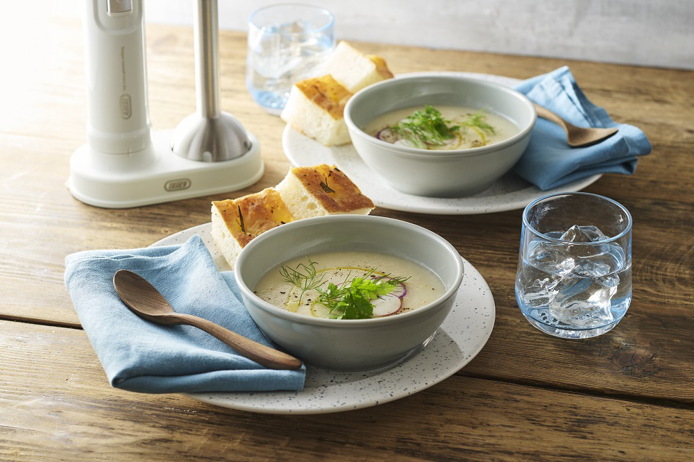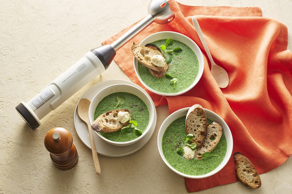 USB充電式のToffyコードレスハンドブレンダー。コードレスだから、コンセントの場所やコードのわずらわしさを気にせず使えます。キッチンや食卓など、場所を選ばず使えて快適!