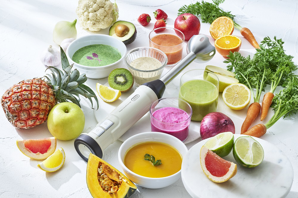 1 台で「つぶす」「まぜる」の2 役を使い分けて、いつもの料理をスピーディーに、手のかかる料理も簡単に作れます!