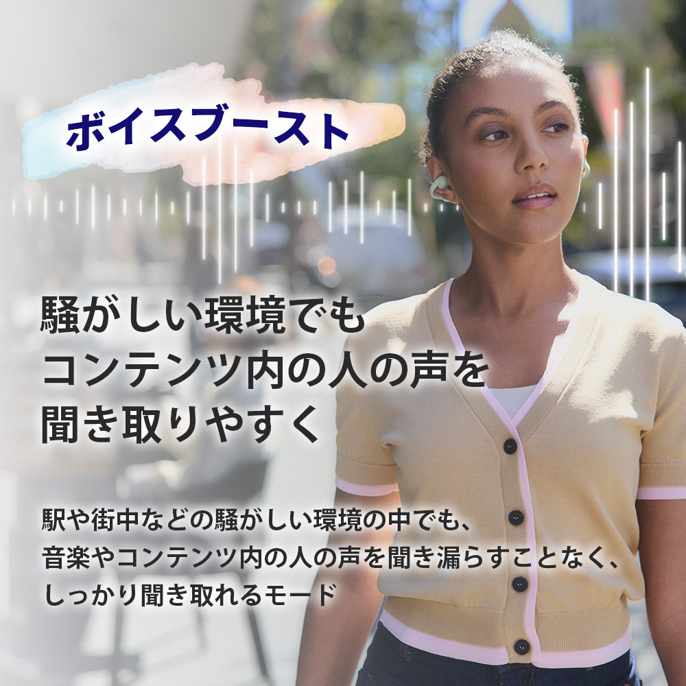 駅や街中などの騒がしい環境の中でも、声を聞き漏らすことなく、しっかりと聞き取ることが可能です。
