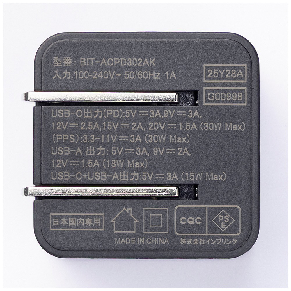 PDアダプター 30W ブラック BIT-ACPD302AK [2ポート /USB Power Delivery対応 /GaN(窒化ガリウム) 採用]