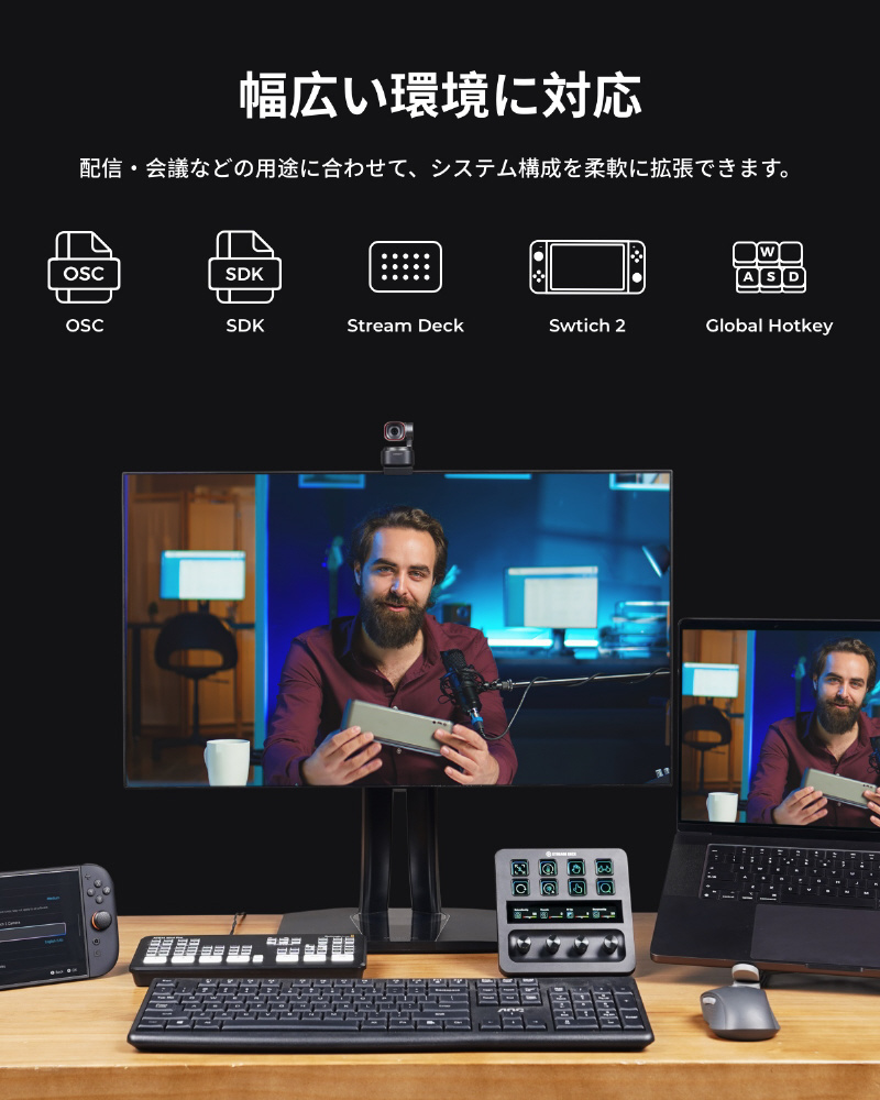 使用シナリオ: ライブ配信、企業/学校のビデオ会議や教育、コンテンツ制作。