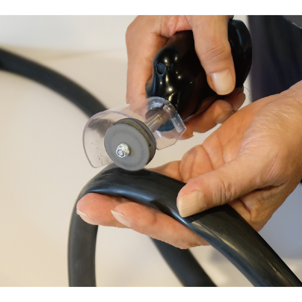 コードレスでどこでも手軽にチューブ加工が可能!利き手を選ばず使いやすい設計!