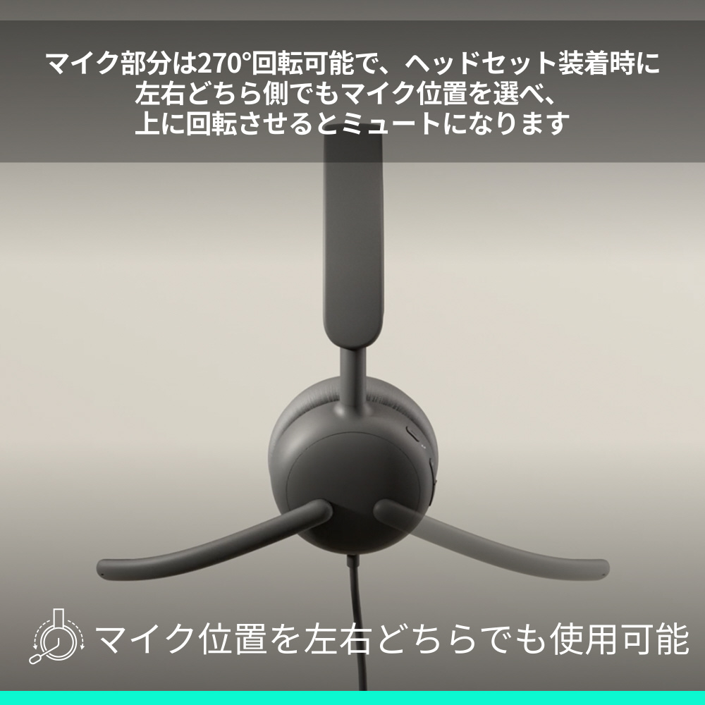 223.5gと軽量設計ながらも堅牢な構造を採用し、イヤーパッドは柔らかくフィットする素材を使用しました。さらにヘッドバンド部分は、ロジクールのゲーミングヘッドセットからヒントを得た、頭の形状に自然に馴染み重量を均等に分散する設計を採用しており、長時間の利用でも快適さを維持します。また、回転式イヤーカップによりマイクブームが270°回転可能で、マイクの位置を左右に選んで装着できます。