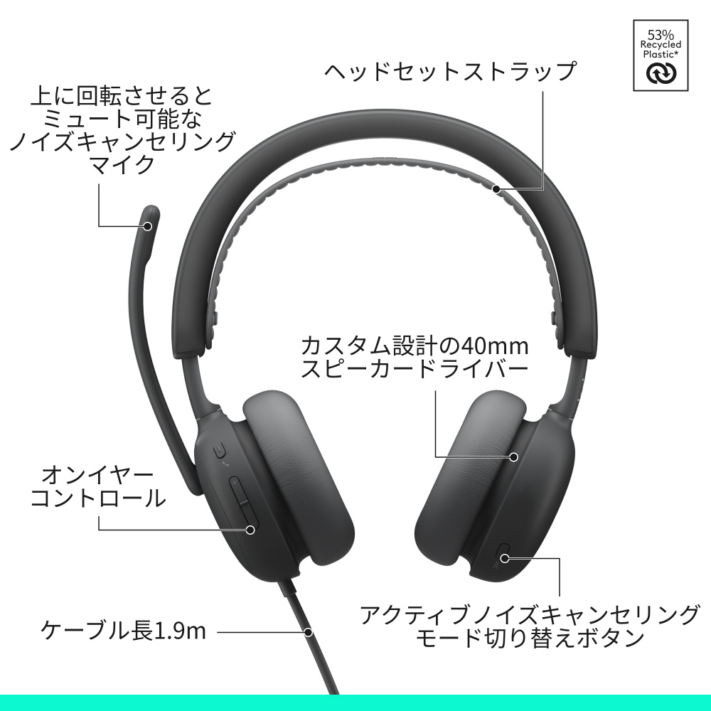 ヘッドセット Zone Wired 2 グラファイト ZONEWIRED2GR [USB-C+USB-A /両耳 /ヘッドバンドタイプ]