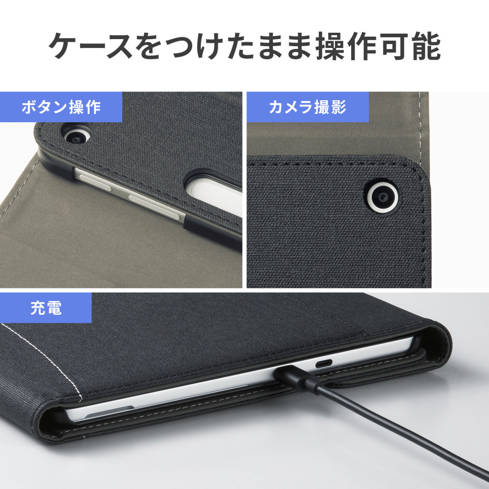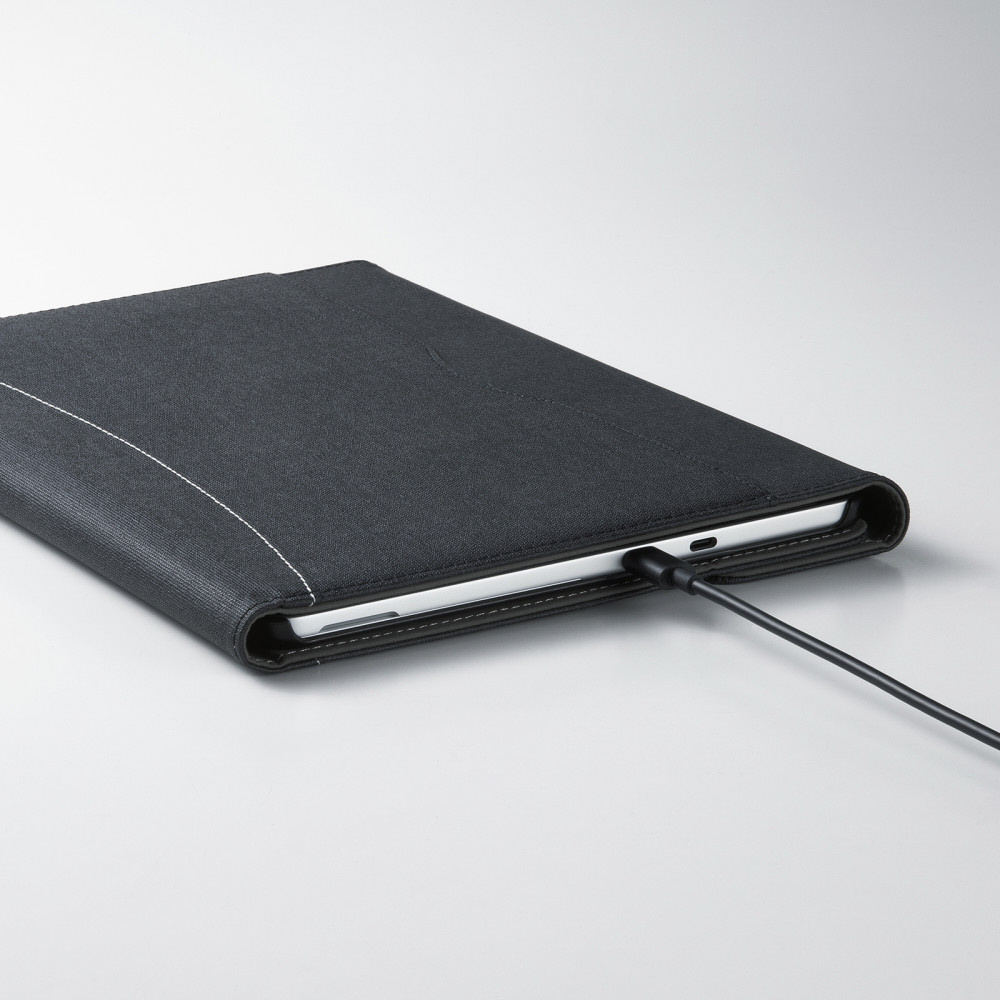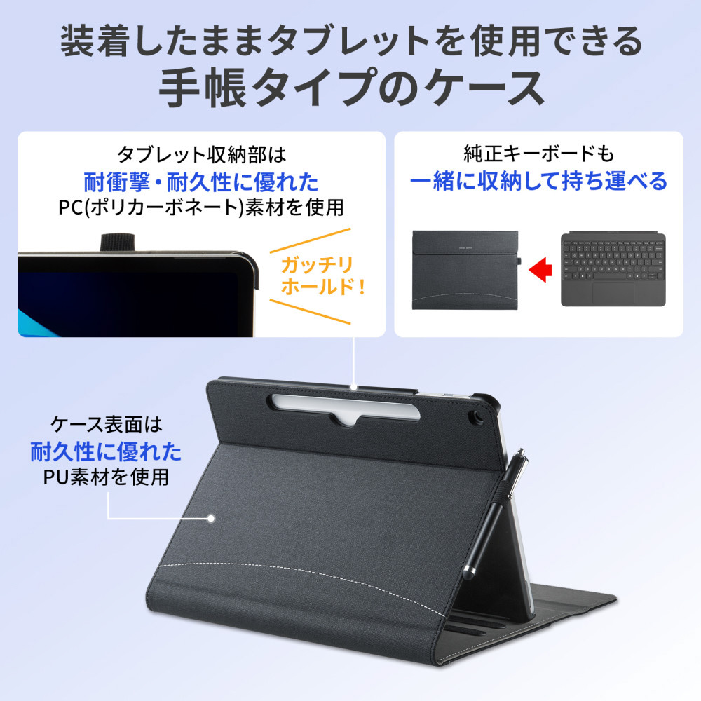 Surface Pro 12インチ用 手帳型保護ケース ハンドベルト/ペンホルダー/タッチペン収納付き 3段階スタンド マグネット式 カバー PDA-SF14BK