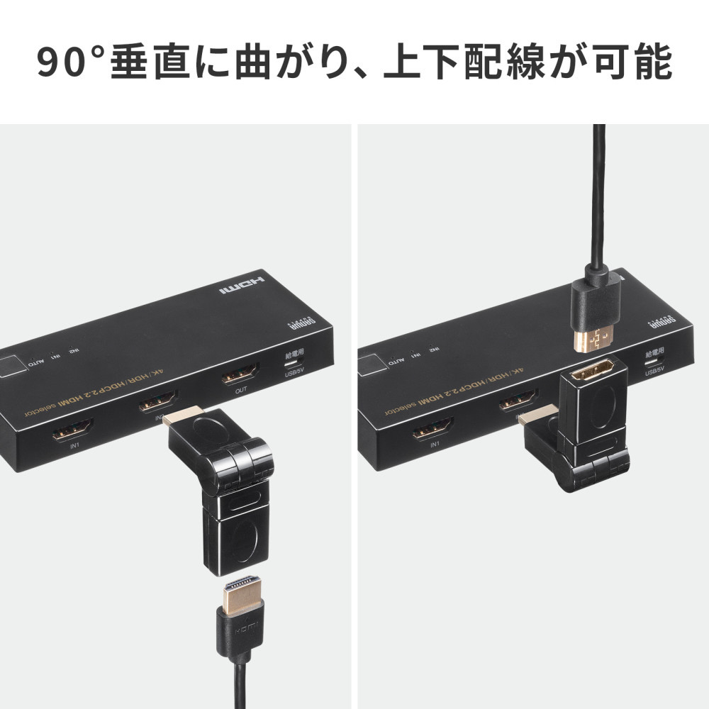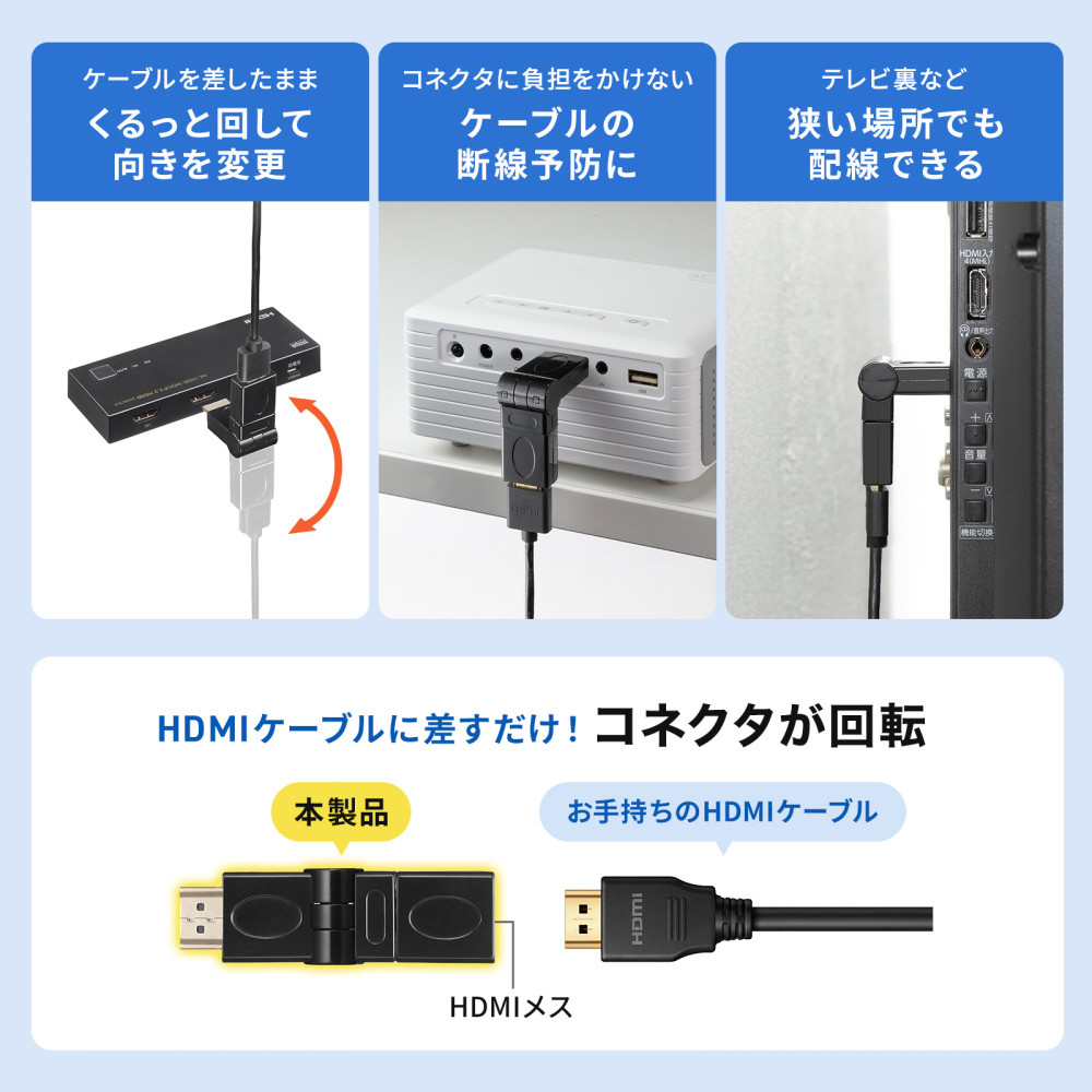 狭所でも自由自在に方向調整。スマートな配線を叶えるHDMIアダプタ。