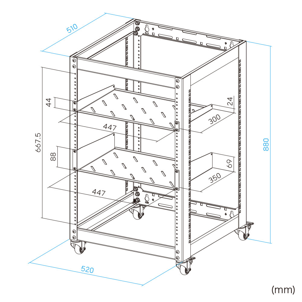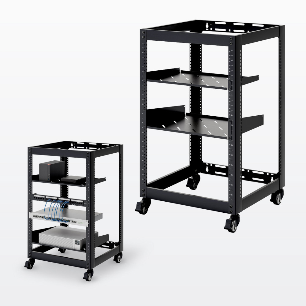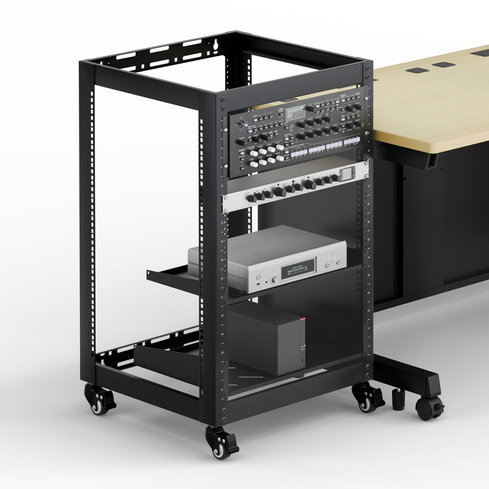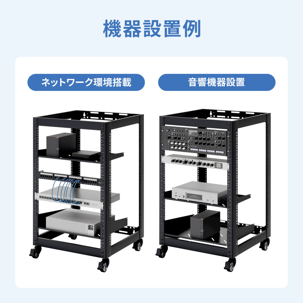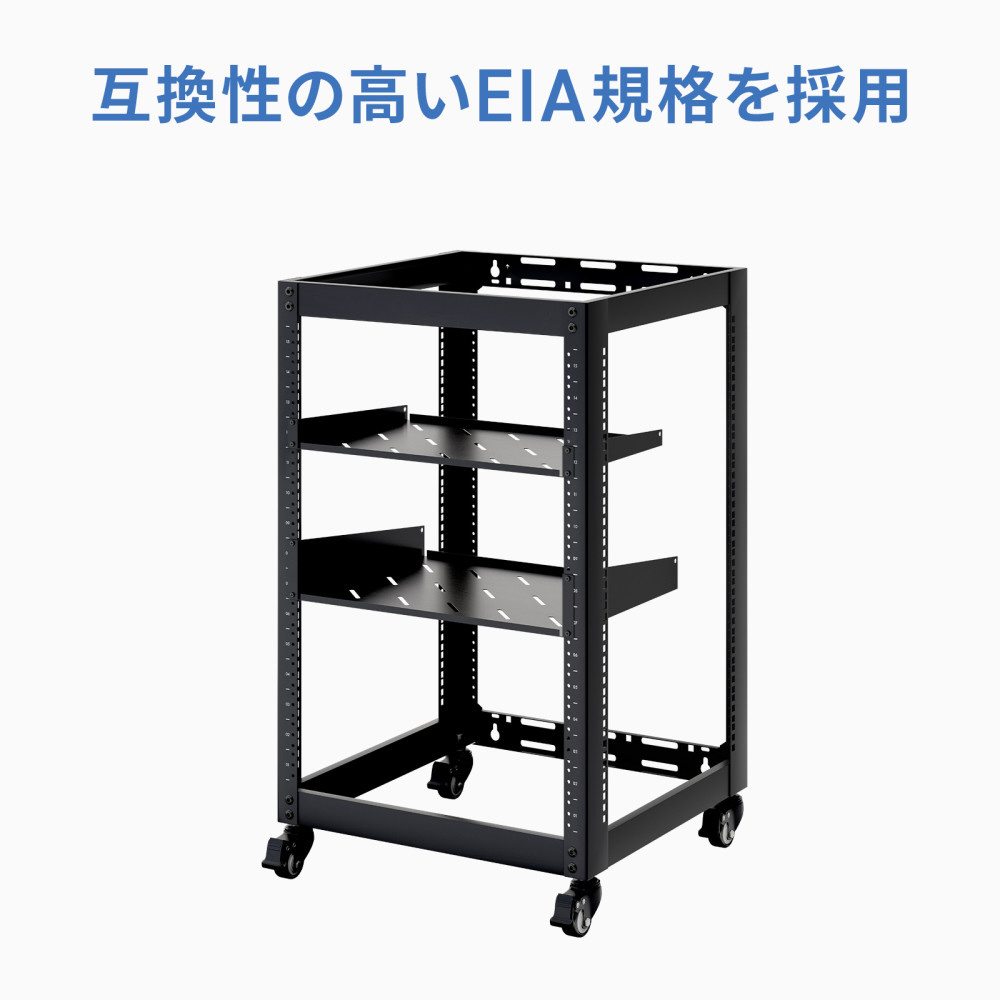 音響や検査機器にも対応。柔軟設置が可能なEIA規格準拠19インチマウントラック。