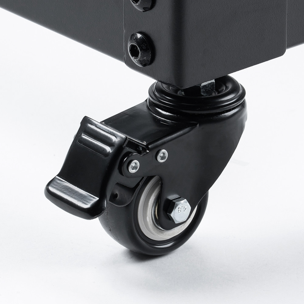 [付属品]機器取付用ネジ、マウント式棚板×2枚、ストッパー付きキャスター×4個