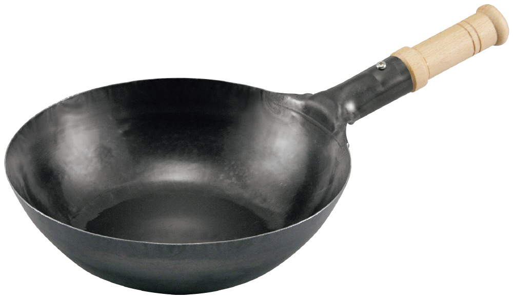 山田 鉄木柄中華片手鍋 27cm 底平型 IH用(板厚2.3mm)