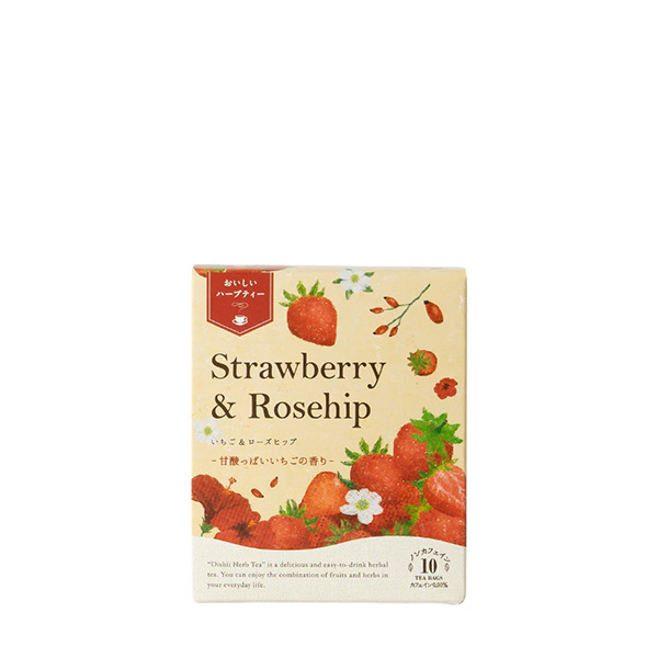 ローズヒップとハイビスカス配合の甘さと酸味のバランスがちょうどよい、いちごの香りのハーブティー。