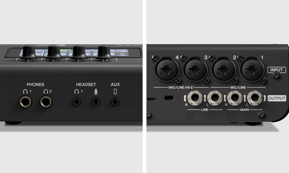 ■4 Mic/Line 入力(2 Combo/3.5 mm ヘッドセットマイク、2 Combo Hi-Z 対応)、1 AUX 入力(3.5 mm)