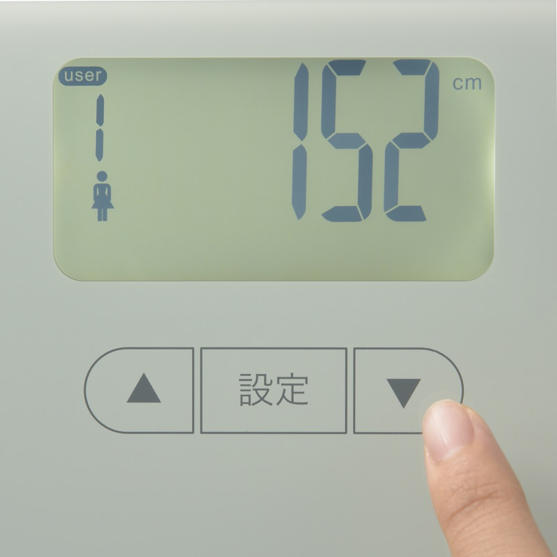 ● 体重、前回体重との差、体脂肪率、体水分率、骨格筋率、骨量、内臓脂肪レベル、基礎代謝量、BMI値が計測できます