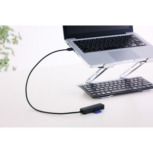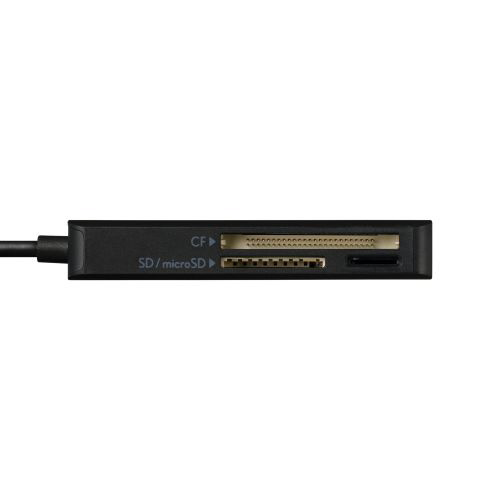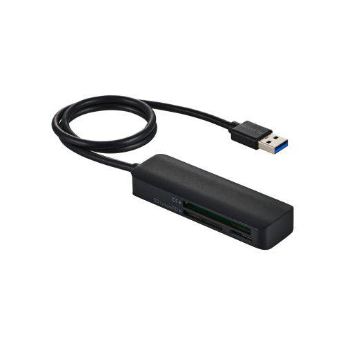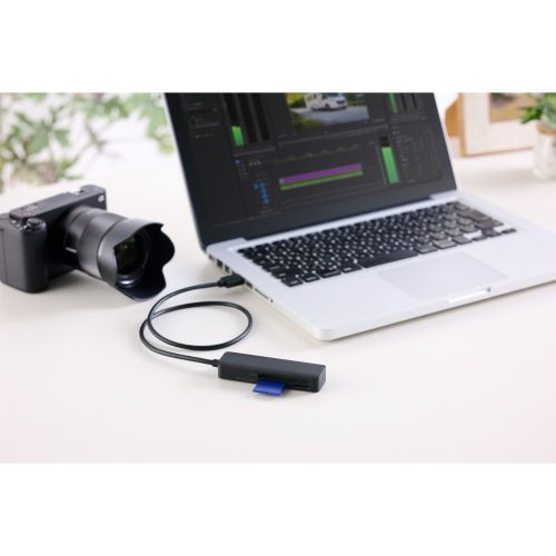 撮影データの転送をもっと速く快適に!パソコンへの接続に便利なUSB-Aプラグのケーブル付きメモリーカードリーダーです。SDカード、microSDカード、コンパクトフラッシュの3スロットを搭載し、デジタルカメラやアクションカメラの撮影データをパソコンへ転送可能。画像・映像データの編集やSNSへのアップロードに便利です。