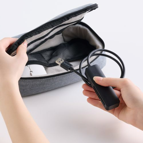 厚み約1.5cmでかばんやポーチなどにすっきり収納でき、持ち運びに便利です。