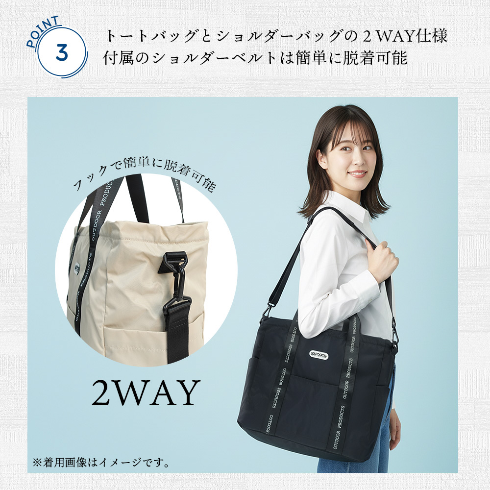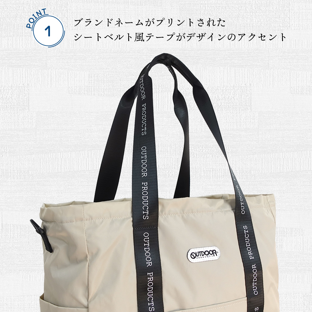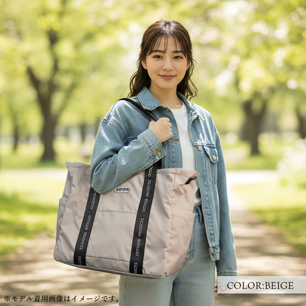 充実した機能に定評がある“OUTDOOR PRODUCTS(アウトドアプロダクツ)”より、光沢感のあるツイル素材を使用した軽量トートショルダーバッグが登場