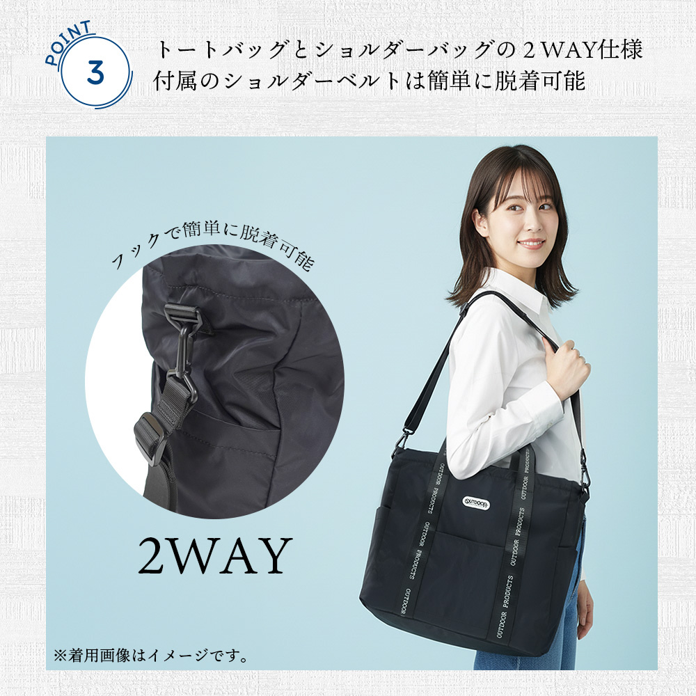 充実した機能に定評がある“OUTDOOR PRODUCTS(アウトドアプロダクツ)”より、光沢感のあるツイル素材を使用した軽量トートショルダーバッグが登場
