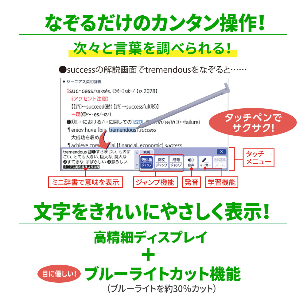 ジャンプ(タッチメニュー) 変化形検索対応 テキストタッチ対応 複数辞書一括検索対応