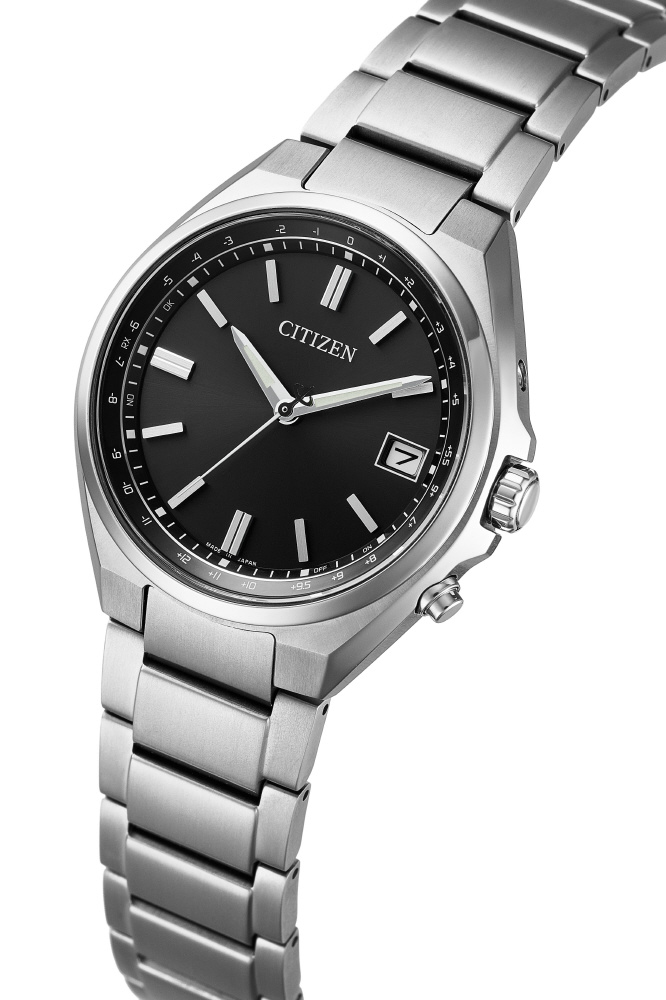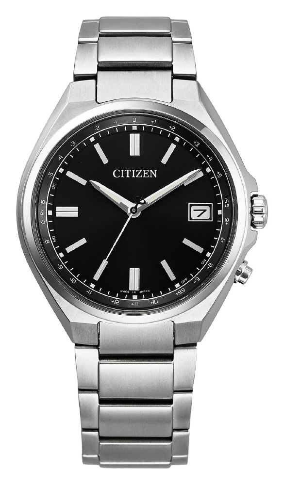 ■ケースとバンドにスーパーチタニウムを採用した、ベーシックな3針タイプのエコ・ドライブ電波時計。手首が細めの方にもフィットしやすい37.5mmケースです。