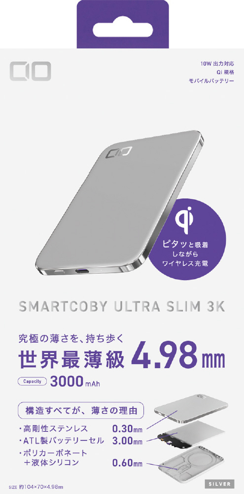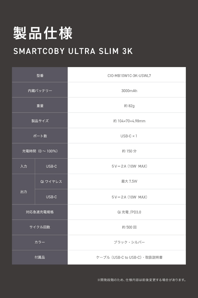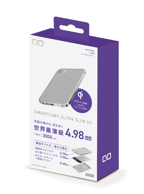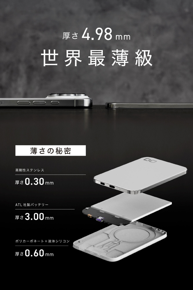 ・くっつけるだけで充電できる便利さ。そして3000mAhとは思えない薄さ。