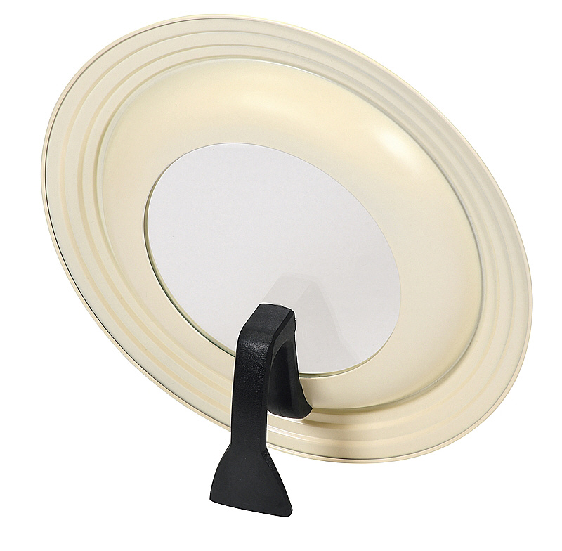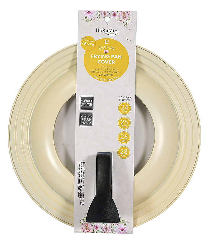 中が見えるガラス窓。シリコーン加工でお手入れカンタン。スタンド式。24・25・26・28cmのフライパンに対応。本品は、鉄にシリコーン樹脂塗装を施しています。