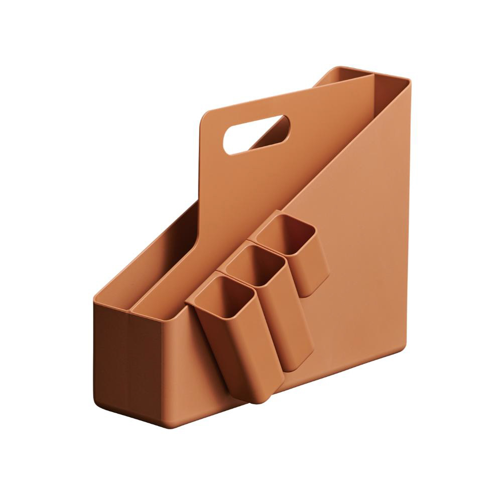 取っ手が付いているので持ち運びも簡単。文房具やファイルなど業務に必要な小物をさっと移動できます。