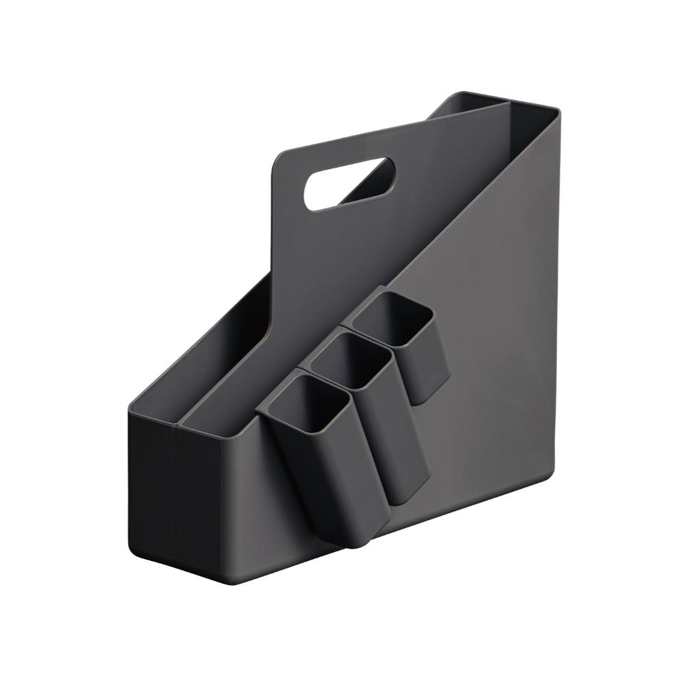 取っ手が付いているので持ち運びも簡単。文房具やファイルなど業務に必要な小物をさっと移動できます。