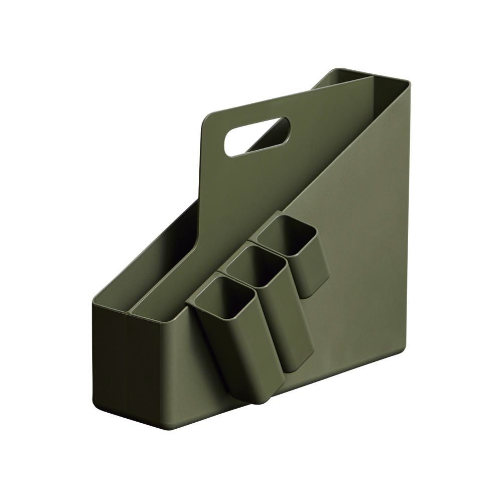 取っ手が付いているので持ち運びも簡単。文房具やファイルなど業務に必要な小物をさっと移動できます。