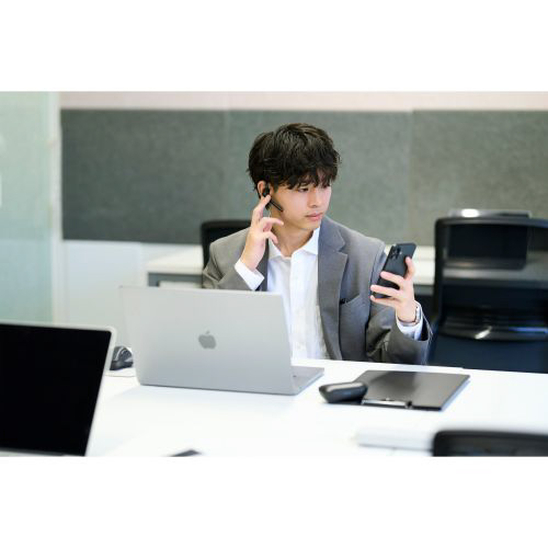 ENC( 環境ノイズキャンセリング) 機能搭載で周囲の騒音をカットし、ノイズの少ないクリアな会話を届ける片耳ワイヤレスヘッドセットです。高音質な通話でオンラインコミュニケーションをサポートします。