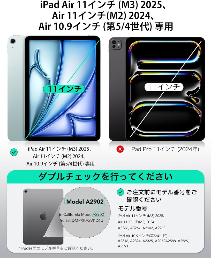 ご注意:iPad 11世代(11インチ)と他のiPadモデルには非対応です。