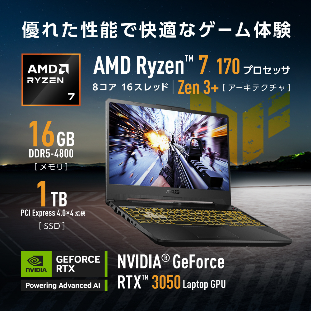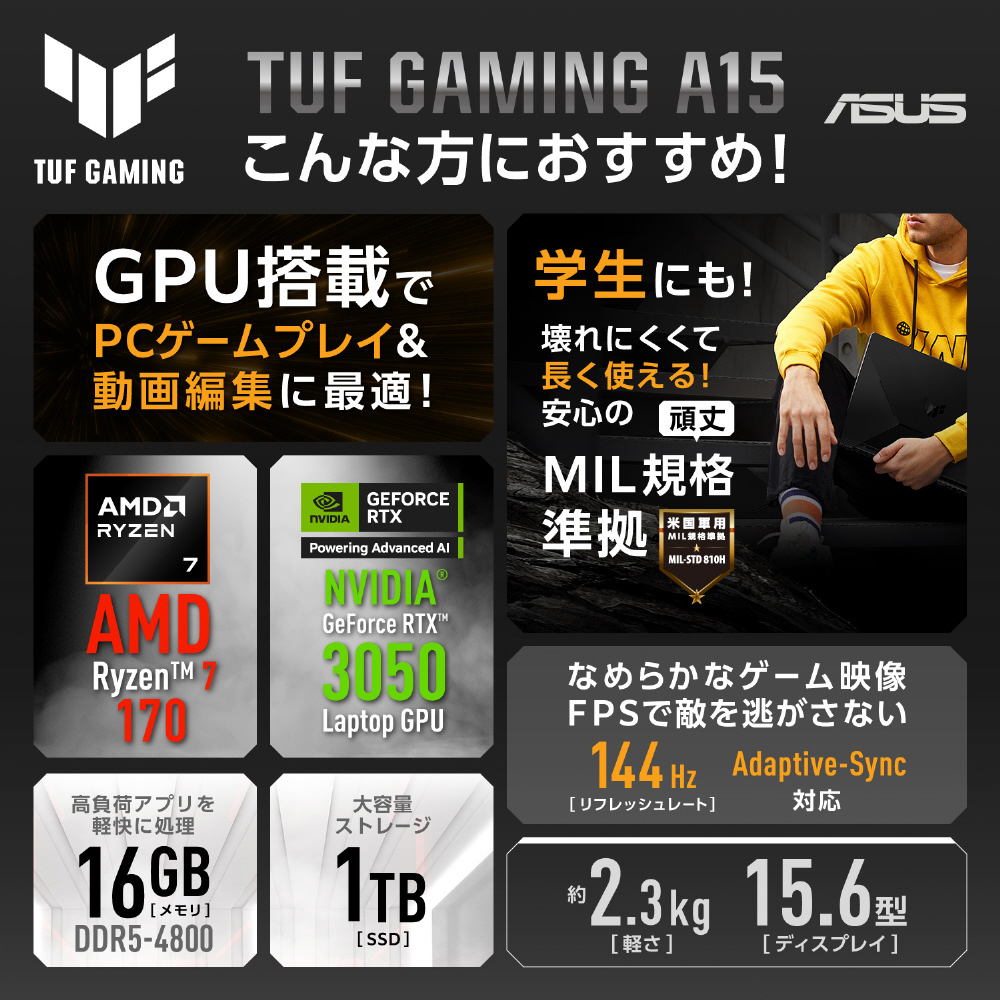 FA506NCQ-R7R3050T ゲーミングノートパソコン TUF Gaming A15 グラファイトブラック [15.6型 /Windows11 Home /AMD Ryzen 7 /メモリ:16GB /SSD:1TB /無し /日本語版キーボード /2026年2月モデル]