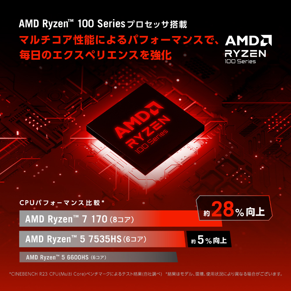 AMD Ryzen 7 170 プロセッサを搭載。高い処理能力を省電力で発揮し、ゲーミングや動画編集、タスクの同時実行をどこでもサクサクこなすことができます。また、NVIDIA GeForce RTX 3050 Laptop GPUにより、ライト〜ミドル級ゲームタイトルのグラフィックスを高解像度で楽しめます。