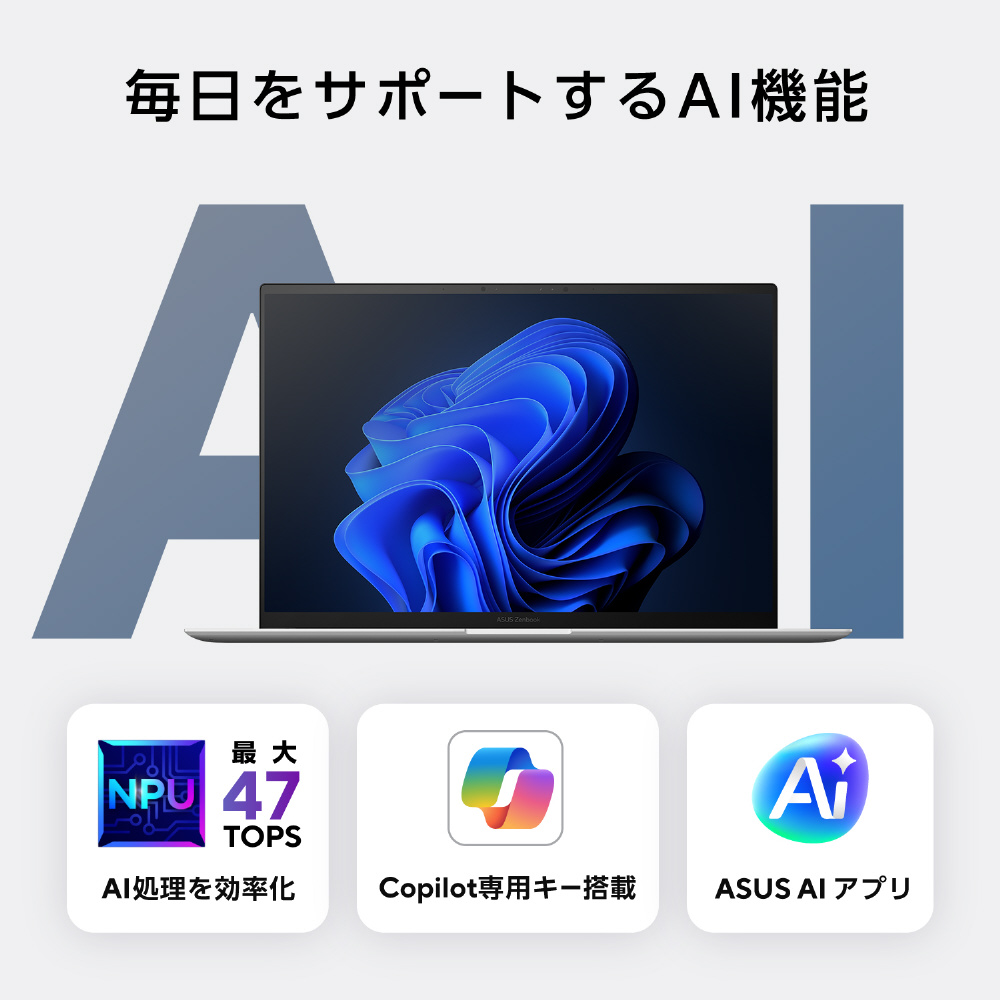 毎日のAIアシスタント Copilot in Windowsに加え、マルチメディアデータを自動でカテゴライズし、整理をしてくれるソフトウェアStoryCubeやカメラがユーザーの有無を認識してディスプレイの明度を調整するAiSenseカメラなど、独自のAI機能も各種搭載。面倒なことはAIに任せて、生まれた時間を有意義に活用できます。