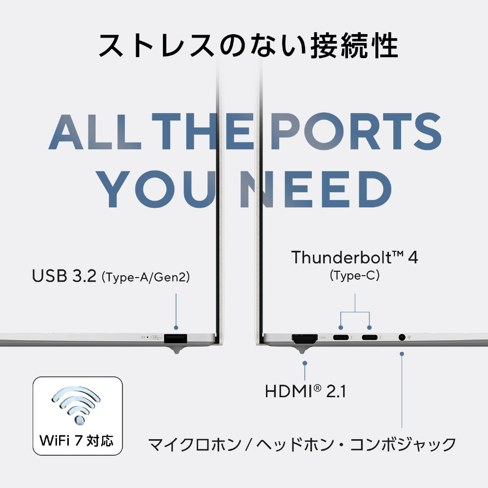 マックス47 TOPS NPUによる優れたAIパフォーマンスを実現するインテル Core Ultra 7 プロセッサー 258Vを搭載。コンテンツの作成・編集などをすばやくこなし、生産性を向上します。また、デュアルファン・ベイパーチャンバー搭載とジオメトリックグリルデザインの通気孔の冷却機能で、高いパフォーマンスを維持します。