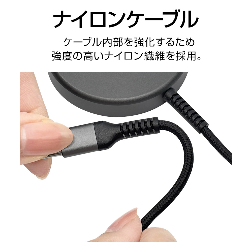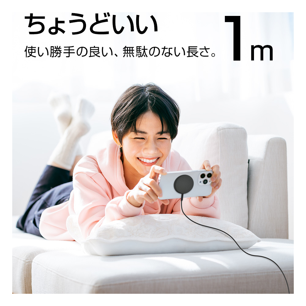 ワイヤレスチャージャー Qi2.2認証 25W 1m Type-Cケーブル直付 ダークグレー R10WCC25W05DG [ワイヤレスのみ]
