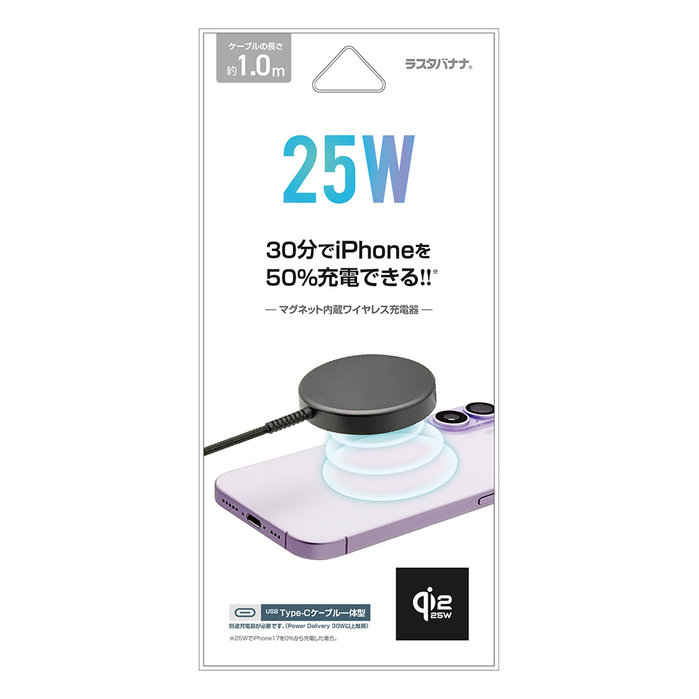●最大出力は25Wで、高出力充電に対応しているスマートフォンを急速充電できます。