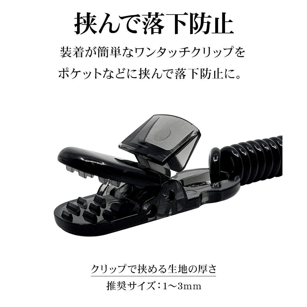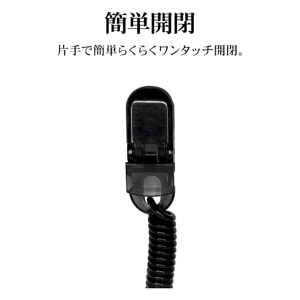 ●コイルストラップのクリップは片手で簡単に開閉できます。