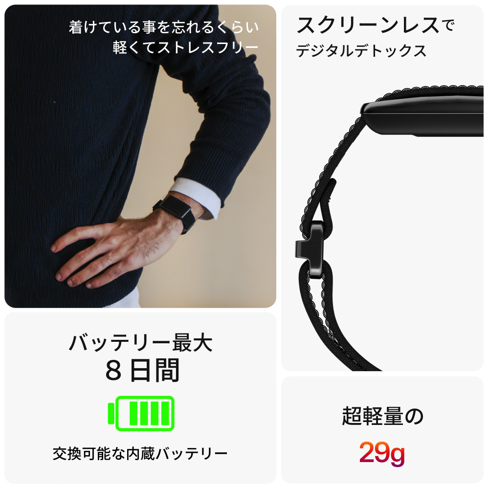 スクリーンレスなので、通知がくる度に反応することもありません。
