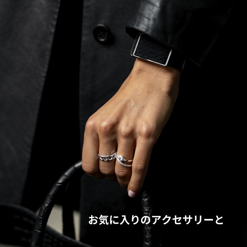 スーツでも、カジュアルでも合わせやすく、お気に入りのアクセサリーや時計などの邪魔をしないシンプルなデザイン。
