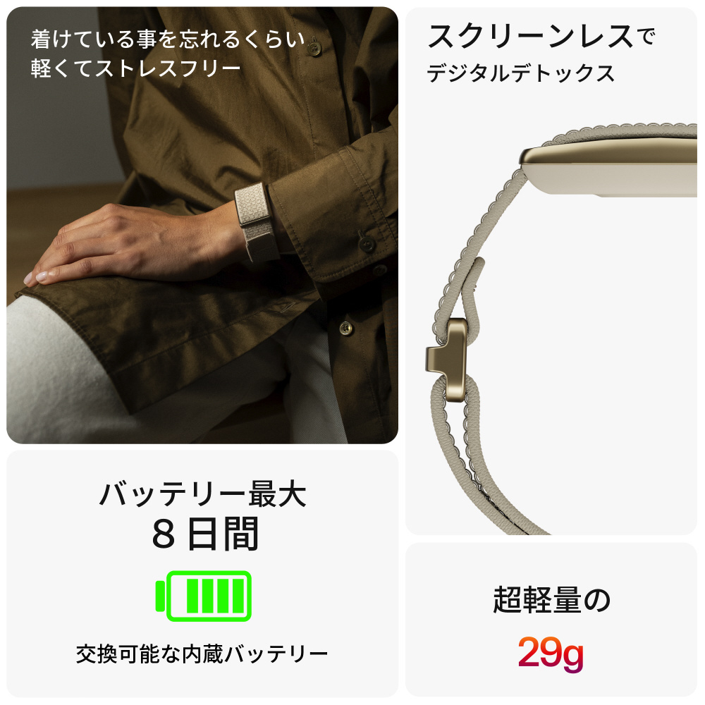 スクリーンレスなので、通知がくる度に反応することもありません。