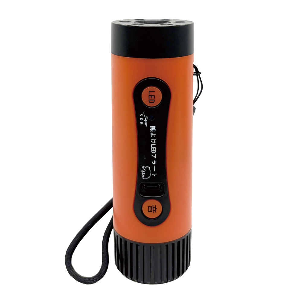 熊対策で複数の音を搭載。LEDライトもついている多機能アラートです。