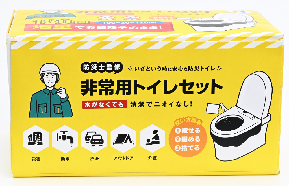 災害や断水、停電時などに水がなくても使える非常用トイレセットです。