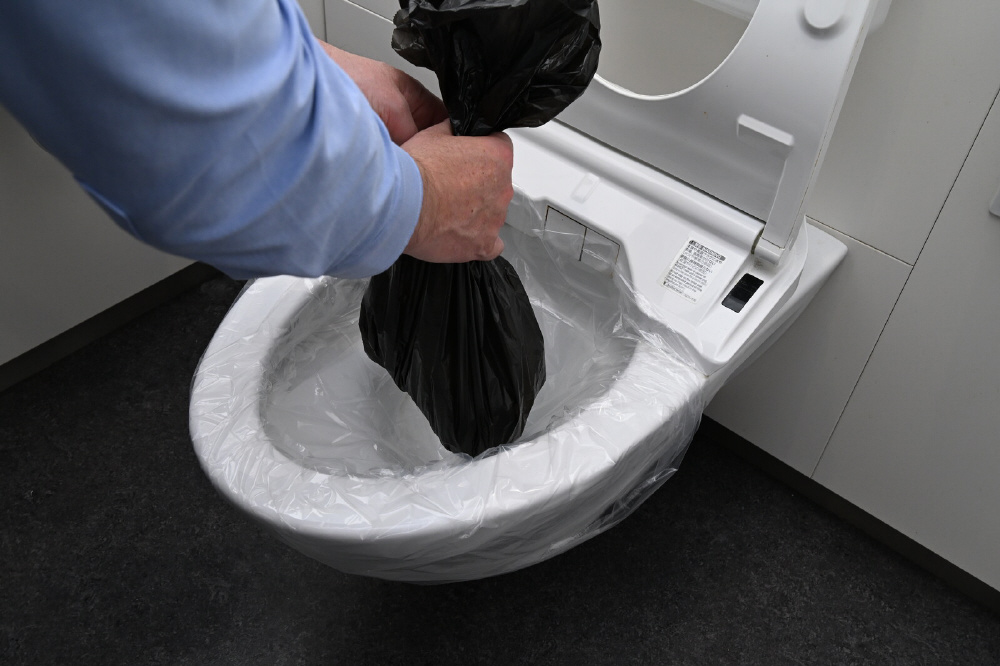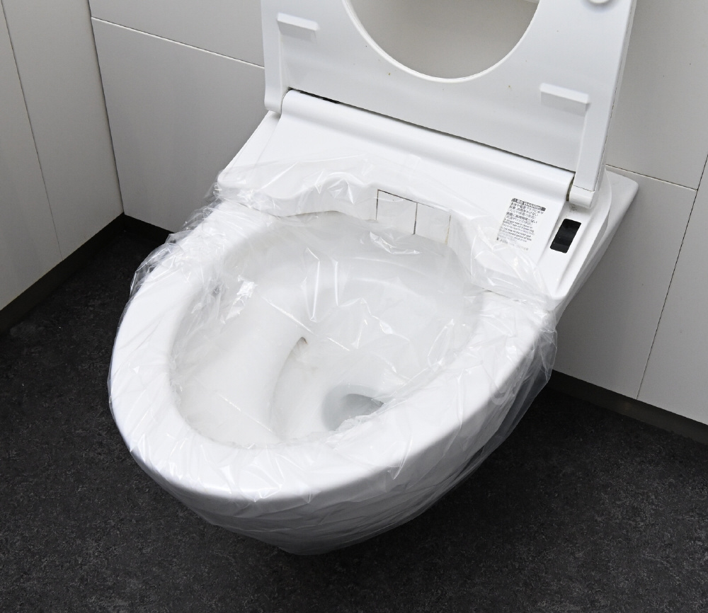 ●使用方法:便座カバーで便器を覆う→汚物袋をその上に覆う→用を足す→凝固剤を入れる→凝固剤が固まったら汚物袋の封をする→ゴミ袋に入れる→ゴミを捨てる