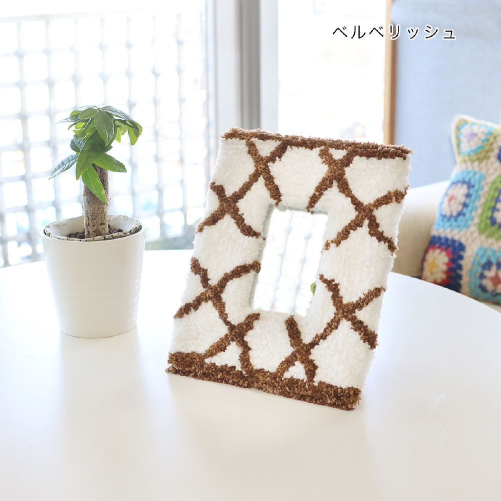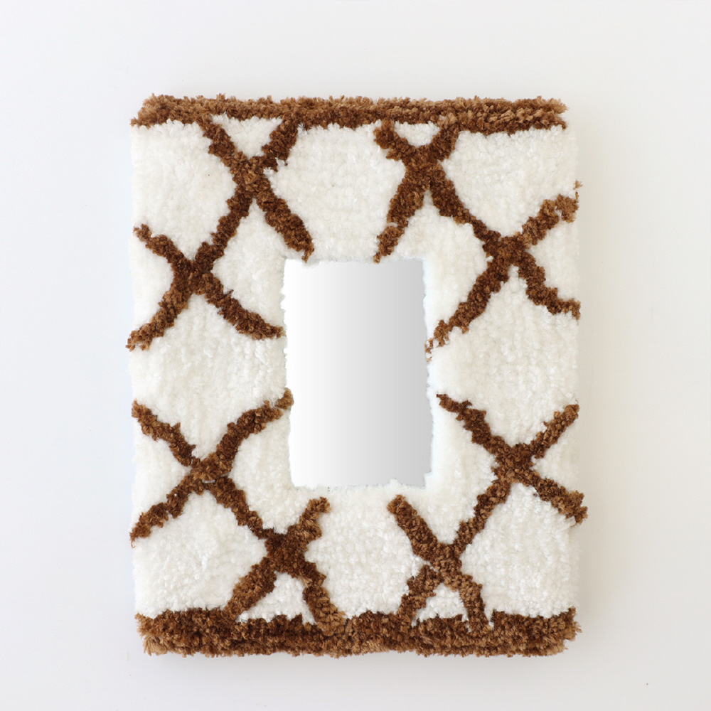 タフティングミラー 20×25cm スタンドミラー 卓上 ブラウン