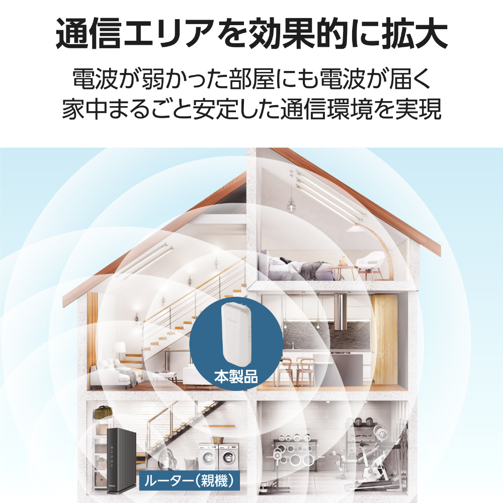 ■Wi-Fi 6対応で家中に電波を届ける中継器