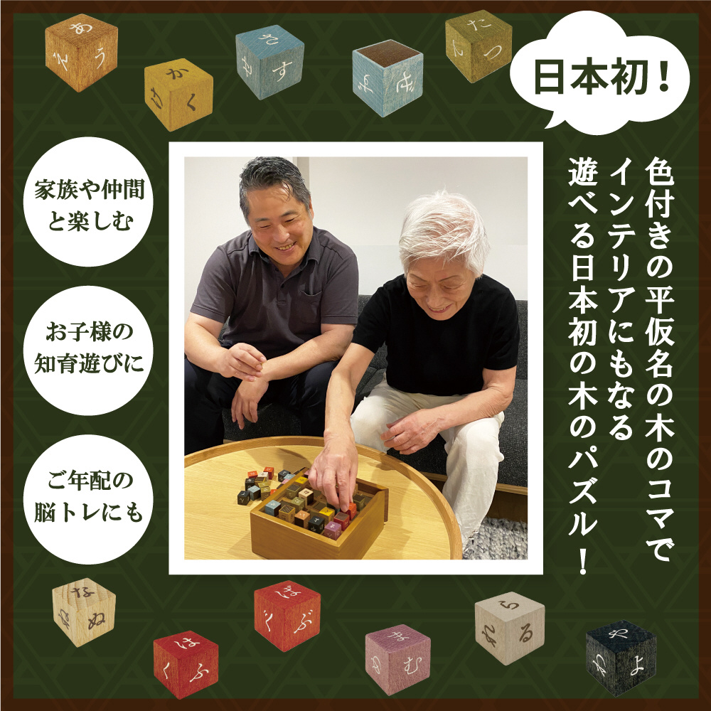 色別ひらがなコマで簡単に区別可能。温かみを感じる木製で何度でも遊べる。
