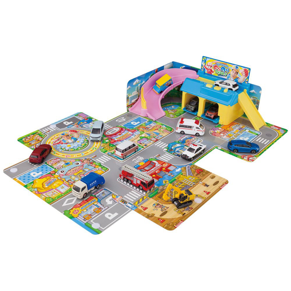 トミカを格納したり、発車したりとサウンドに合わせて様々なトミカ遊びも楽しめます。