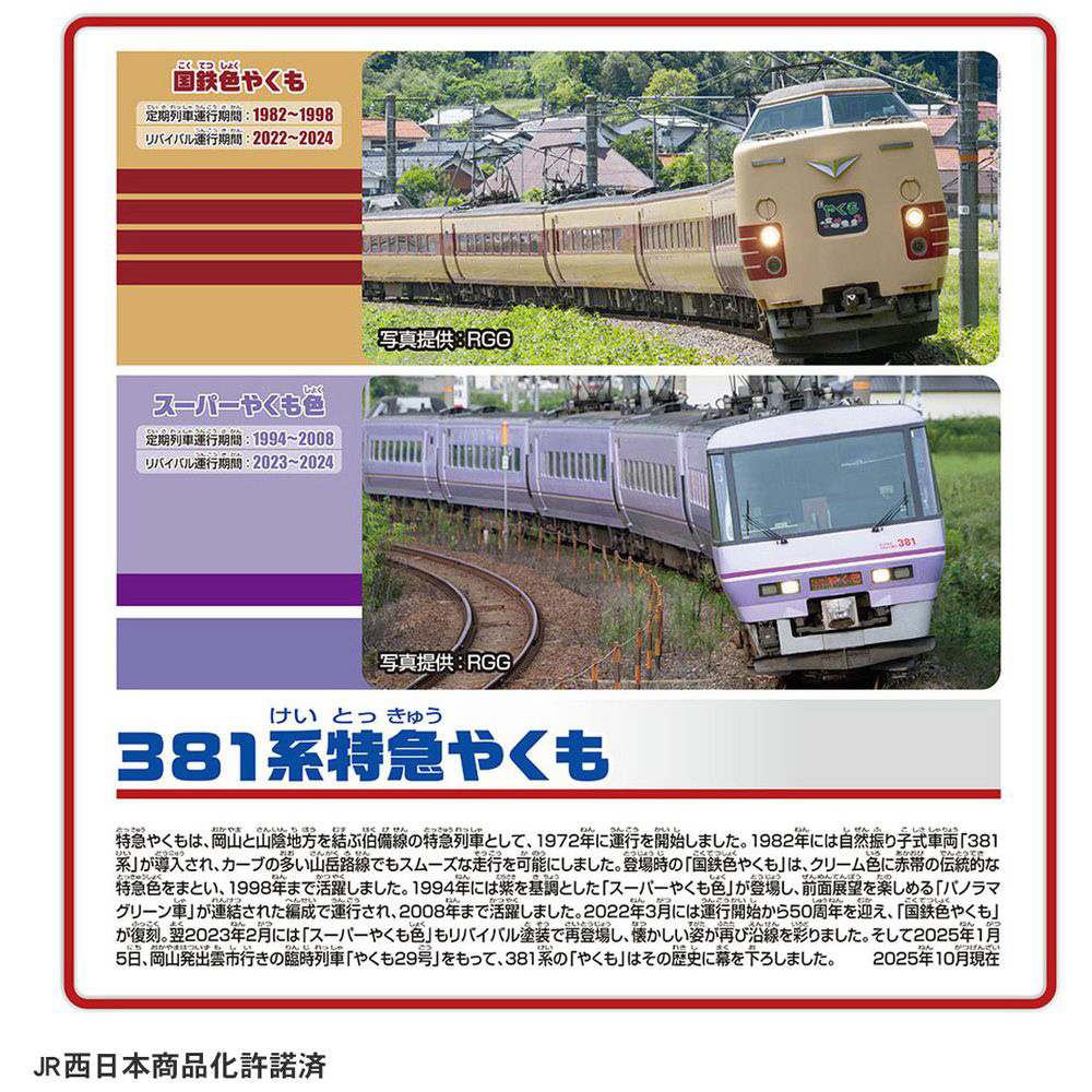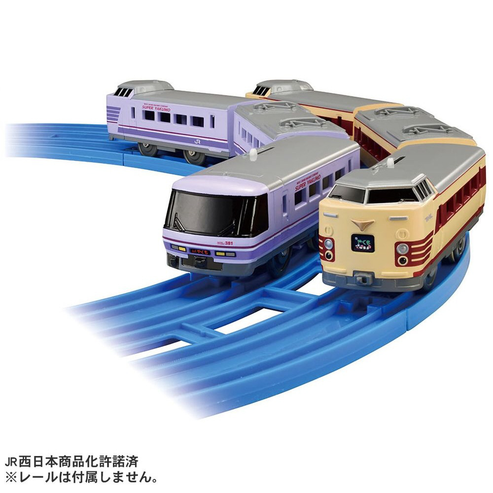 1982年の営業運転開始から昭和、平成、令和まで時代を超えて走り続け、2025年1月に運用が終了した381系特急やくものダブルセットがプラレールに登場です。